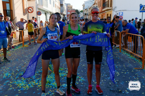 En chicas Carol Catalá fue la primera, local en atravesar la línea de meta con un tiempo de 41:14, seguida de Vanessa Yuste 42:36 y Victoria Durá 42: 43.