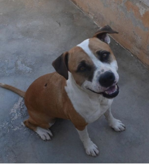 La pequeña pitbull, Akila, acabó en las instalaciones de la protectora de animales Apasa no por su carácter, sino porque el bebé recién nacido de la familia a la que pertenecía era alérgico al pelo de perro. Akila nació en 2021 y en 2023 ya pasó a formar parte de la gran camada de Apasa. Su tamaño es medio y destacar por su precioso pelaje.