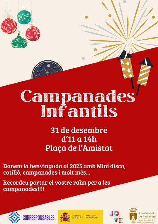 El 31 de diciembre, de 11:00 a 14:00 horas, Pedreguer celebrará las Campanadas Infantiles, una actividad pensada para los más pequeños y sus familias. Este evento busca crear un ambiente lúdico y seguro para que los niños disfruten de las tradiciones de fin de año.