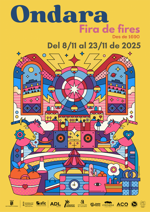 Según ha explicado el departamento de Promoción Económica y Comercio de Ondara, la feria contará con la colaboración de asociaciones locales, colectivos vecinales y entidades comarcales. El cartel oficial de esta edición ha sido diseñado por el artista local Hugo Giner y las principales actividades de este año se concentrarán durante dos fines de semana, 8 y 9 y 15 y 16. La popular Fira d’Atraccions permanecerá abierta durante tres fines de semana consecutivos hasta el 23 de noviembre. Ese mismo día, como colofón, se celebrará también el Concurso Nacional Canino.