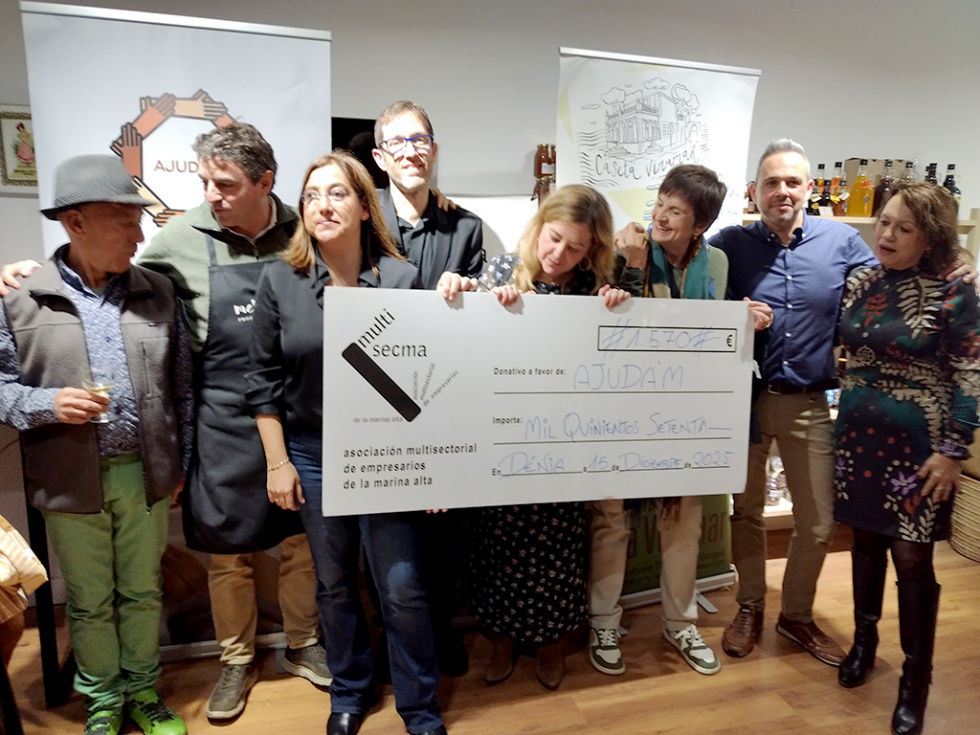 La Asociación Multisectorial de Empresarios de la Marina Alta (Multisecma) ha hecho entrega de 1.570 euros a la asociación AJUDA’M, Associació de Jubilats d’Ajuda al Menor, de Pedreguer. La cantidad se ha recaudado en su tradicional cata solidaria Por una buena causa celebrada esta semana en Melicatesen en Dénia.